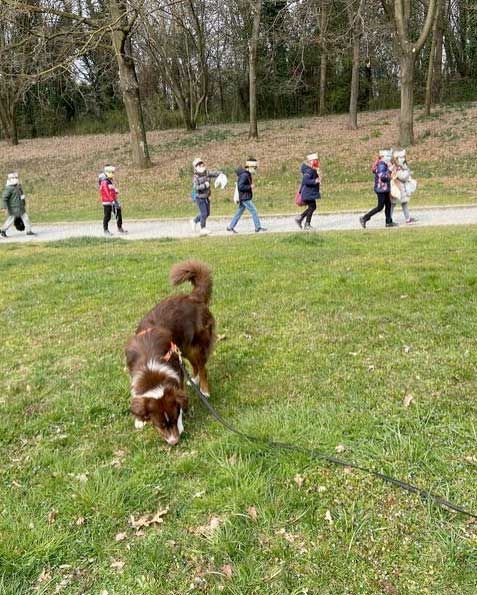 "Abbiamo aiutato Dory, con attività che a lei piacciono, ad affrontare l' uscita di casa e il pianerottolo del nostro condominio. Lucia, pazienza e determinazione e Dory che ce la mette sempre tutta."