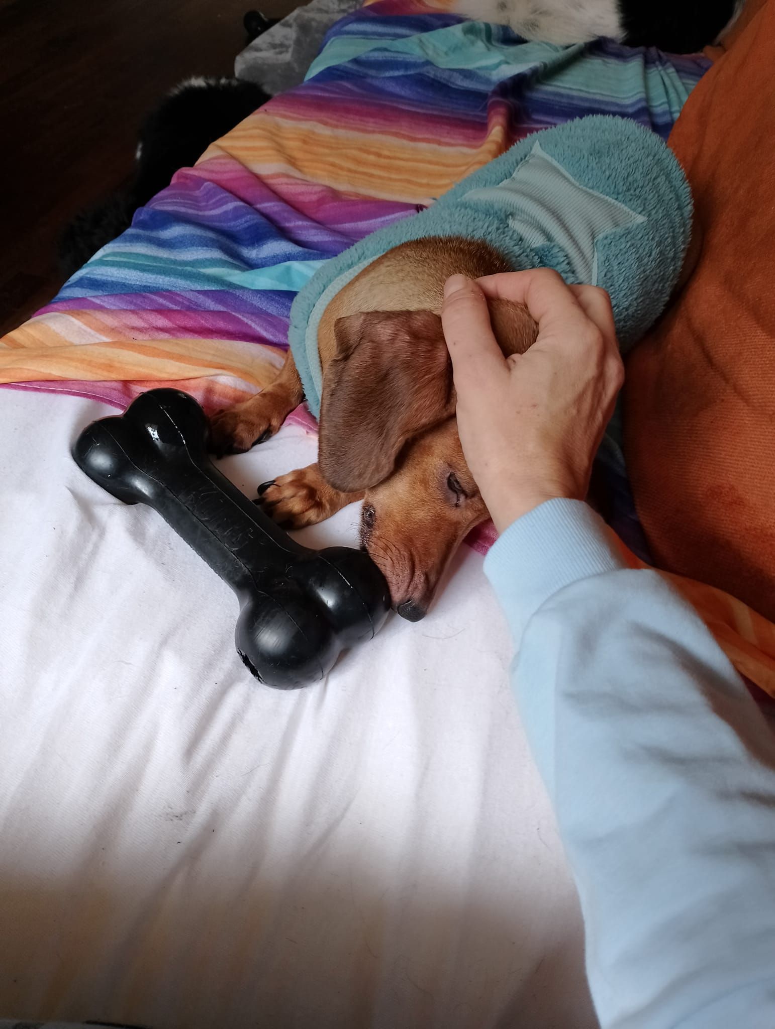 "Queste tre foto rappresentano un bassotto che adesso sa fare il cane. Il bassotto aveva una minima capacità di interagire con i suoi simili, ed era stra possessivo con giochi e cibo, anche verso i bipedi. Se allungavi una mano al momento sbagliato era pinzata certa.